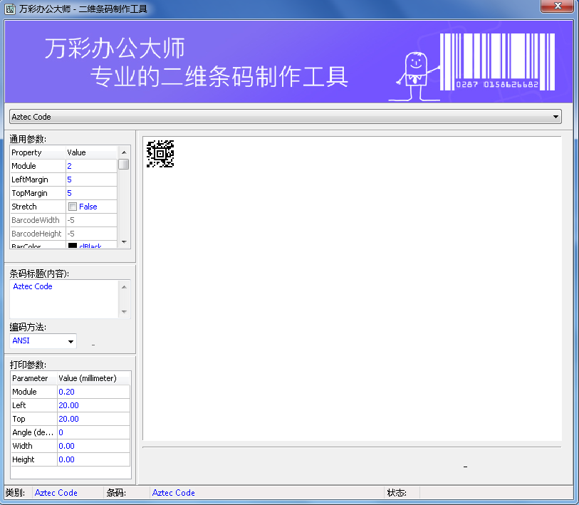 萬彩辦公大師提供了一款操作簡單易上手,靈活專業(yè)的二維碼制作工具。支持19種二維碼類型,滿足各類型標簽設計。可直接編輯二維碼的通用參數(shù)、條碼內(nèi)容及打印參數(shù),直接選擇一種編碼方法即可快速生成。輕松保存條碼為*.bmp,*.eps,*.emf,*.gif,*jpg,*.png,*.svg和 *.wmf格式圖片。