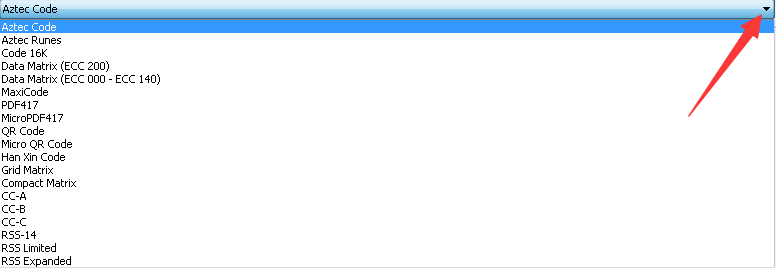 點擊下拉箭頭,瀏覽更多的二維條碼類型,選擇一個合適的類型。