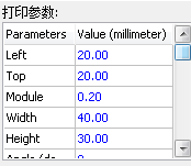 可以設置的打印參數包括:寬高,角度, 頁面頂欄,模塊。