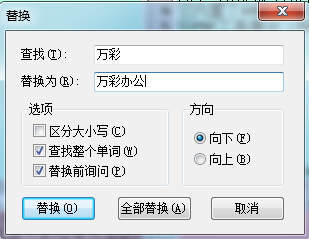 替換”, 開始查找文本。