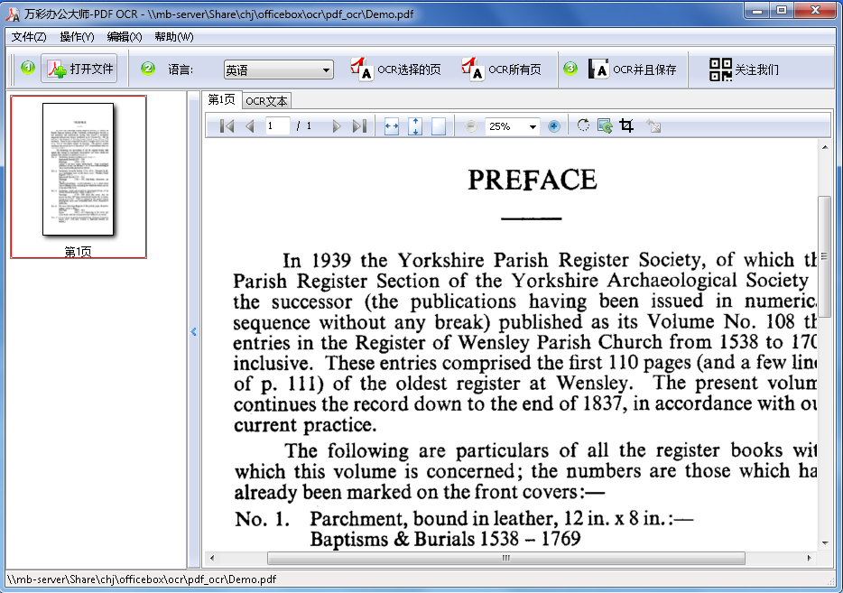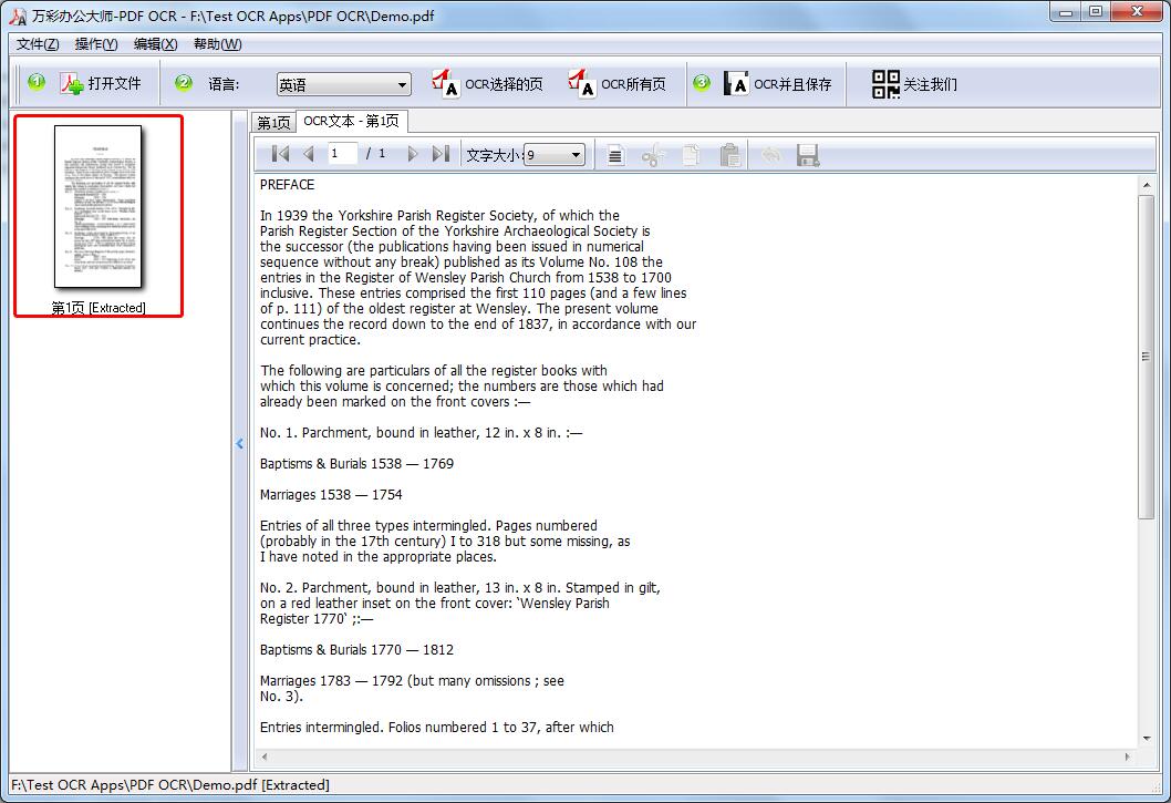 可OCR當(dāng)前頁(yè)面。 點(diǎn)擊