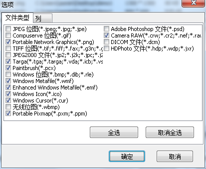 進入選項窗口。可以進行“文件類型”與“列”設置。